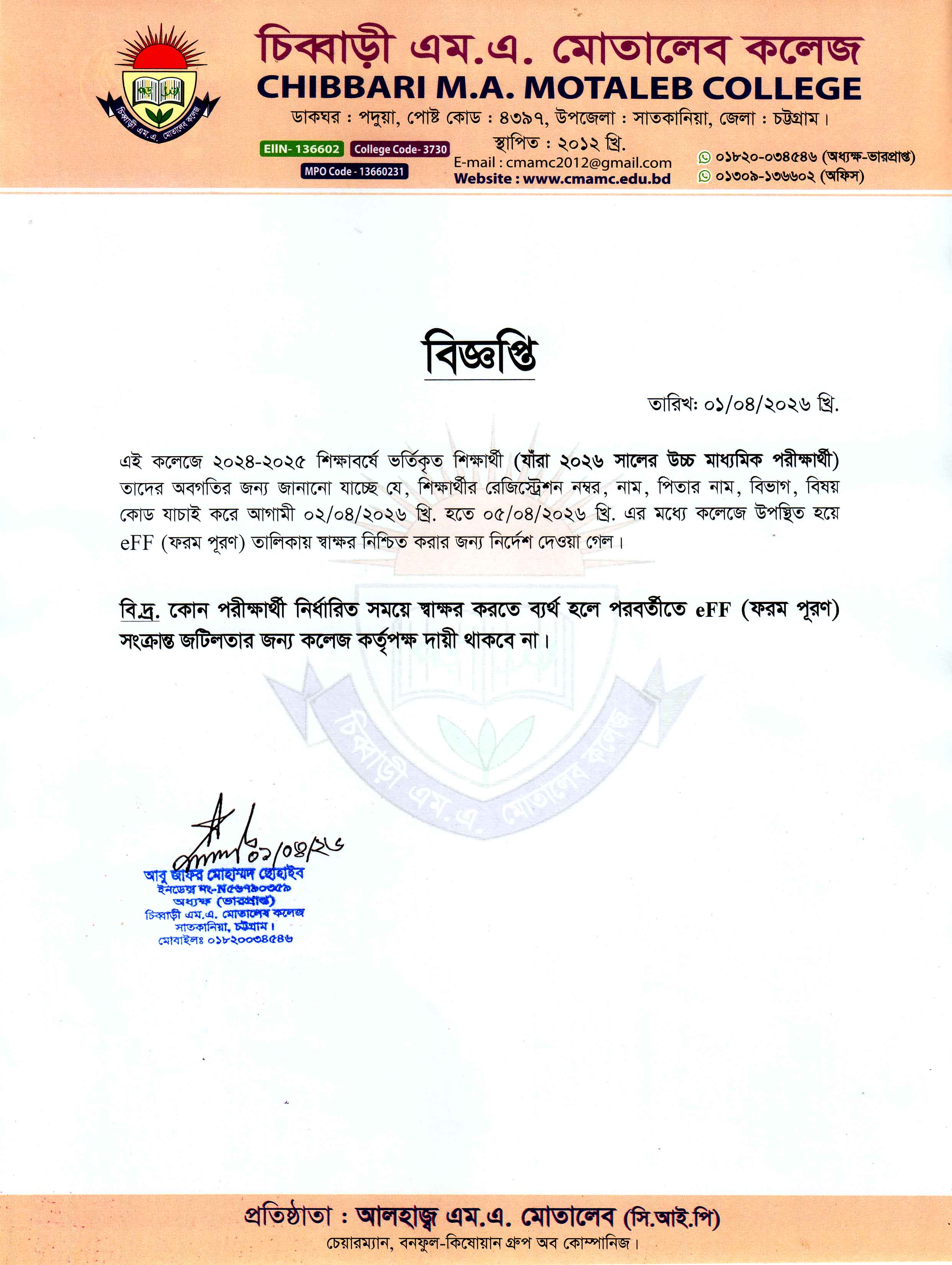 ২০২৫-২০২৬ শিক্ষাবর্ষে একাদশ শ্রেণিতে বিজ্ঞান, মানবিক ও ব্যবসায় শিক্ষা বিভাগে ভর্তির জন্য প্রয়োজনীয় তথ্যাদি।